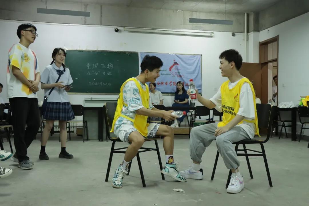 第二个游戏“不说你我他”,通过选定表演小组,确定时间、地点、人物等条件,来组成一道道赛题。在比赛过程中,同学们遵循“友谊第一,比赛第二”的原则,通过全身心投入,把气氛推向了高潮。