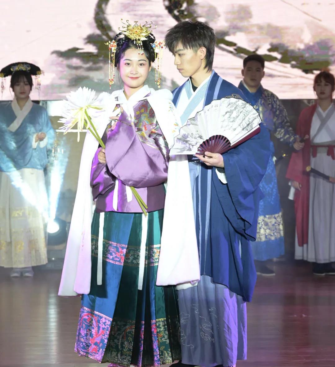 越罗衫袂迎春风,玉刻麒麟腰带红。一席汉衣,挥挥衣袖,将观众带入汉代世界,飘飘衣襟令人叹止。