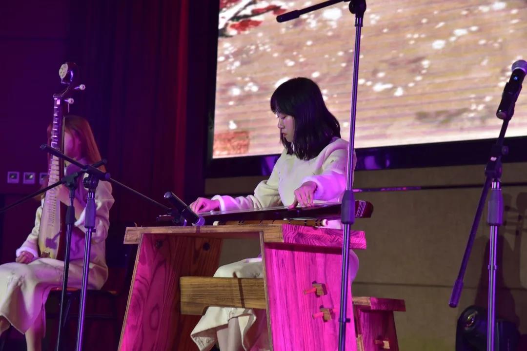 梅花三弄弹奏,表现出梅花在寒风中次第绽放的英姿、不曲不屈的个性和节节向上的气概,这些在弹奏者的指尖挥弹而出。