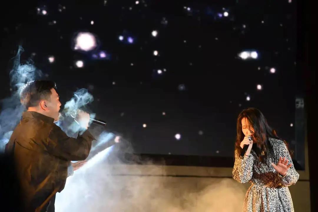 歌曲万有引力将你我吸引,爱的魔力在演唱者的演唱中能够深刻地体会到。他们依偎与相恋,在舞台上深情演唱。