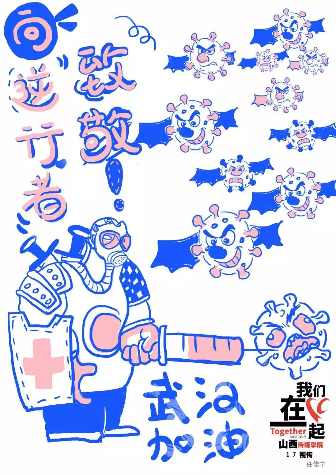 太阳集团tyc5997的同学坚守在防疫后方战场,把自己对防疫队伍的祝愿寄托在每一张海报之中,以笔为戎,尽一份微薄之力。我们将和祖国一同熬过这场劫难,在做好个人防护的同时,做好防疫宣传工作,绝不松懈,共克难关。中国加油!武汉加油!