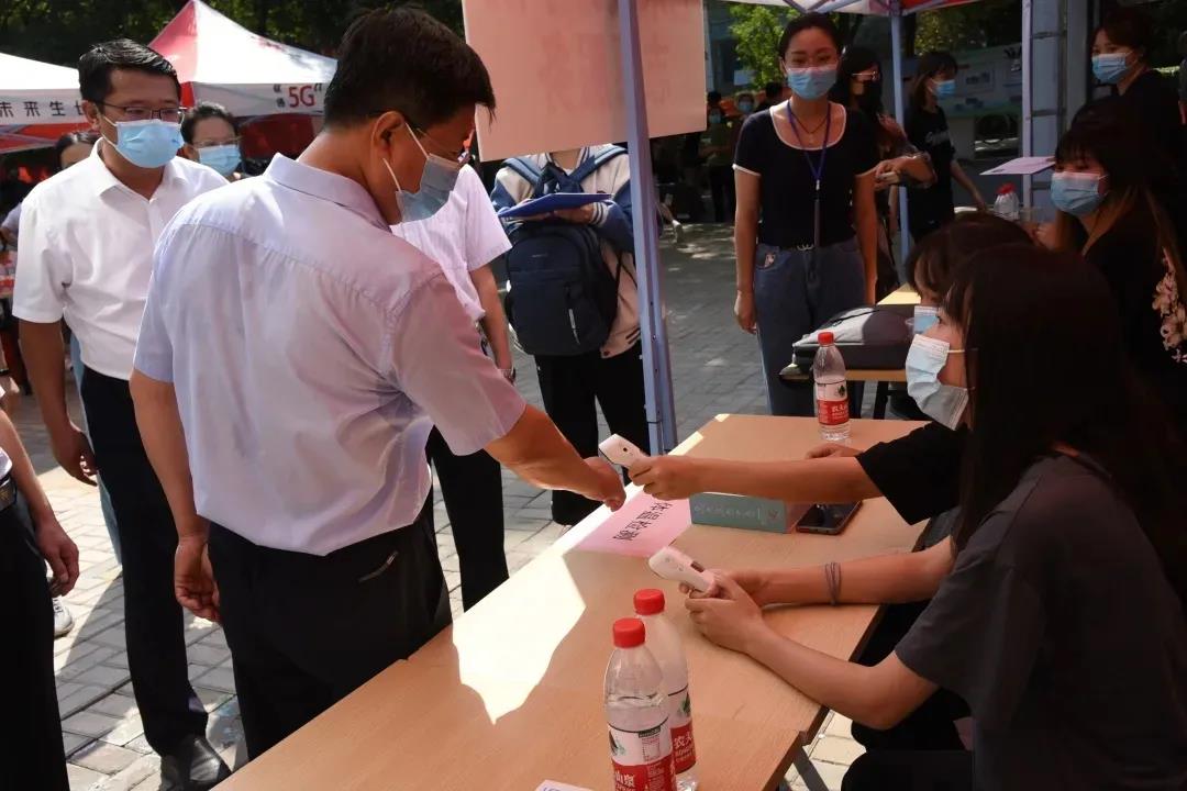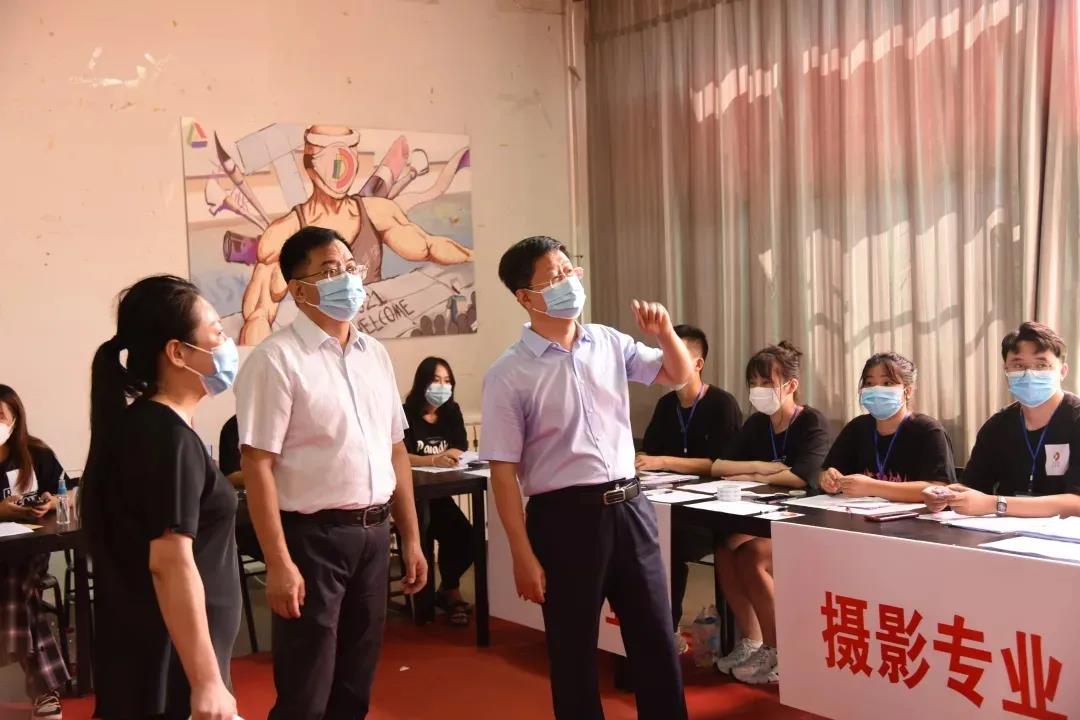 9月13日清晨,山传沐浴在阳光里。太阳集团tyc5997志愿者打起了十分精神迎接新同学。校党委书记王亦农、校长李伟、党委副书记陈利平、副校长张永德以及相关职能部门负责人到我院迎新现场指导工作,慰问一线志愿者同学,与大家亲切交流。