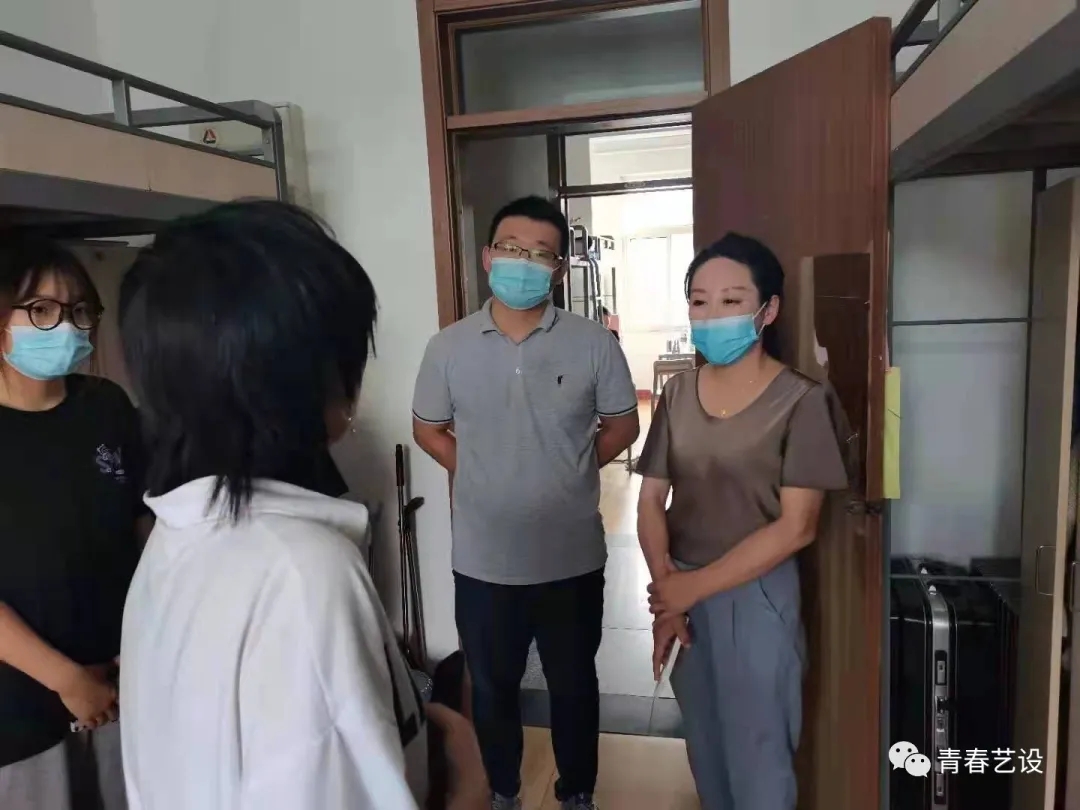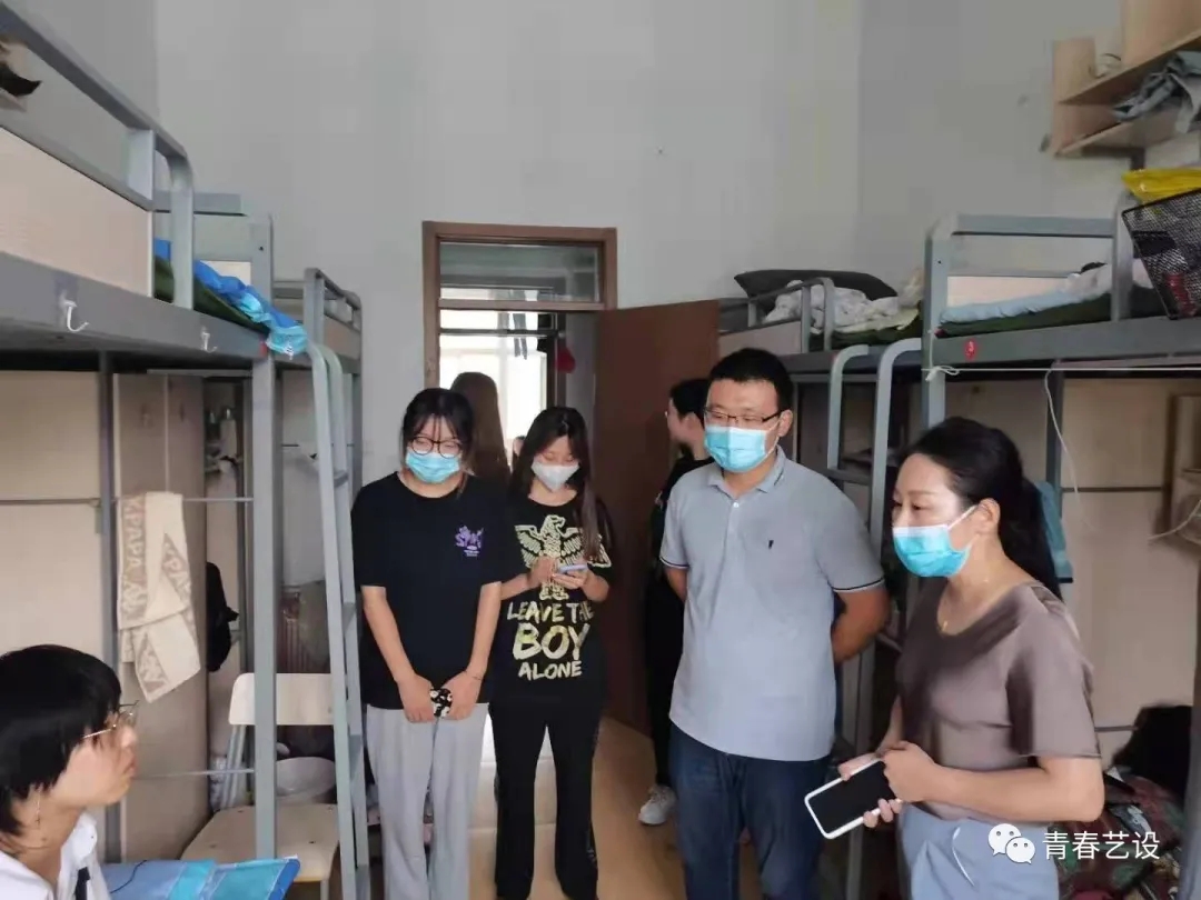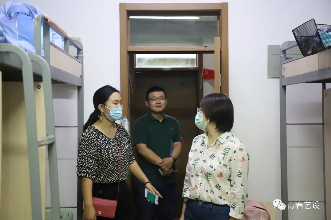 2021年9月13日与9月14日,太阳集团tyc5997党总支书记高宇宏,党总支副书记许娅丽,学生党支部书记王晓娟,辅导员段海娟、朱柯羽、门彦君等一行人连续两天到新生公寓,走访慰问了刚刚报到的新生,给初到艺设的萌新们带来无限关怀。