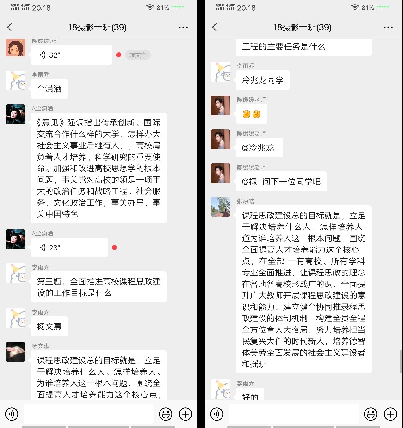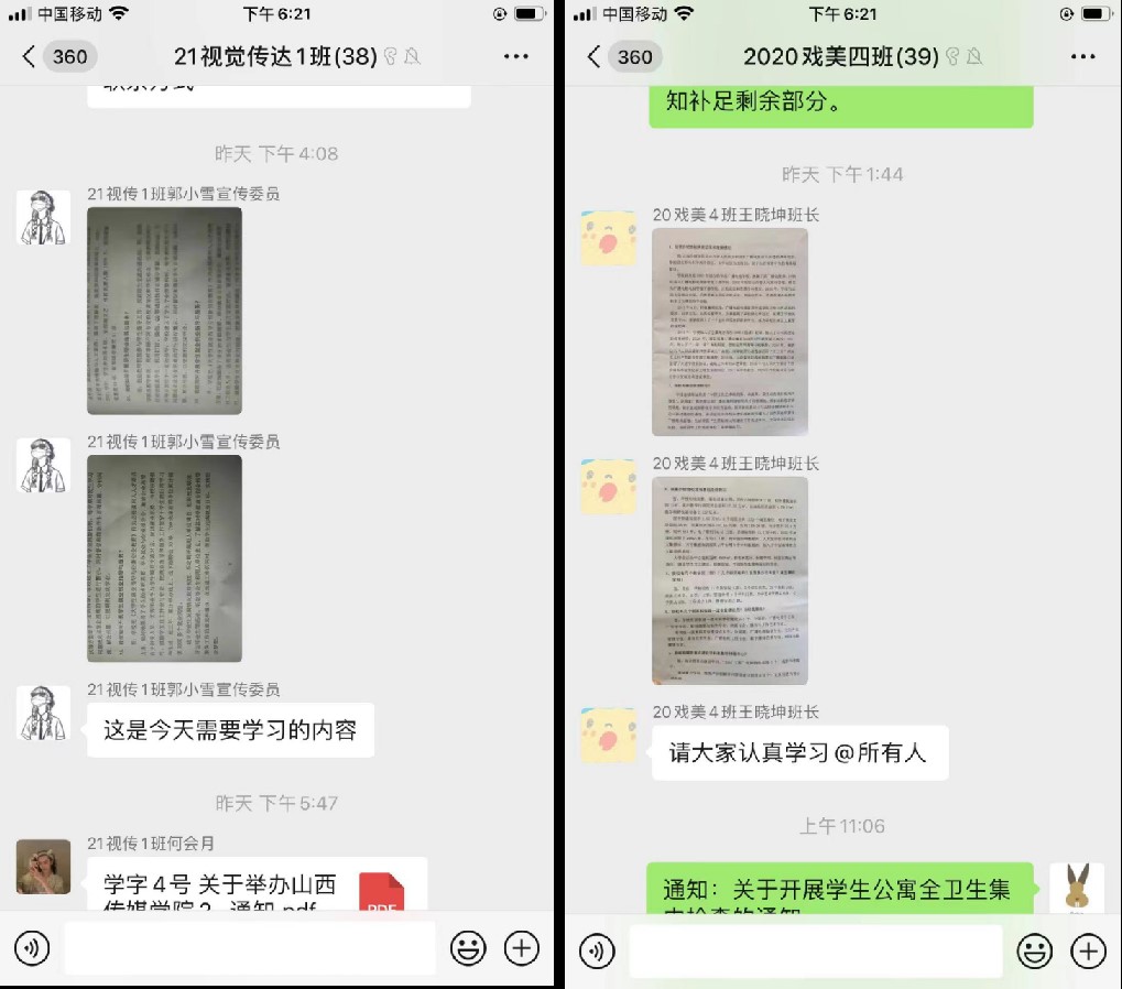 20化妆班、20戏美4班、21视传1、2班、18摄影1班、20摄影2班的辅导员门彦君老师、陈媛媛老师、段海娟老师及评建信息员充分利用线上学习模式,带领各班同学进行线上学习,每日推送一篇简短评估学习知识问答,帮助同学们了解掌握本科教学工作合格评估相关知识,在日常中加强对学生的指导与帮助。