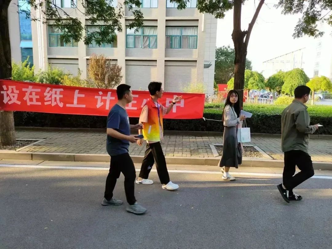 校园里,太阳集团tyc5997的学长学姐穿着整齐,手持指引牌,与新同学积极交流,帮助新同学,照亮新同学们前行的方向!