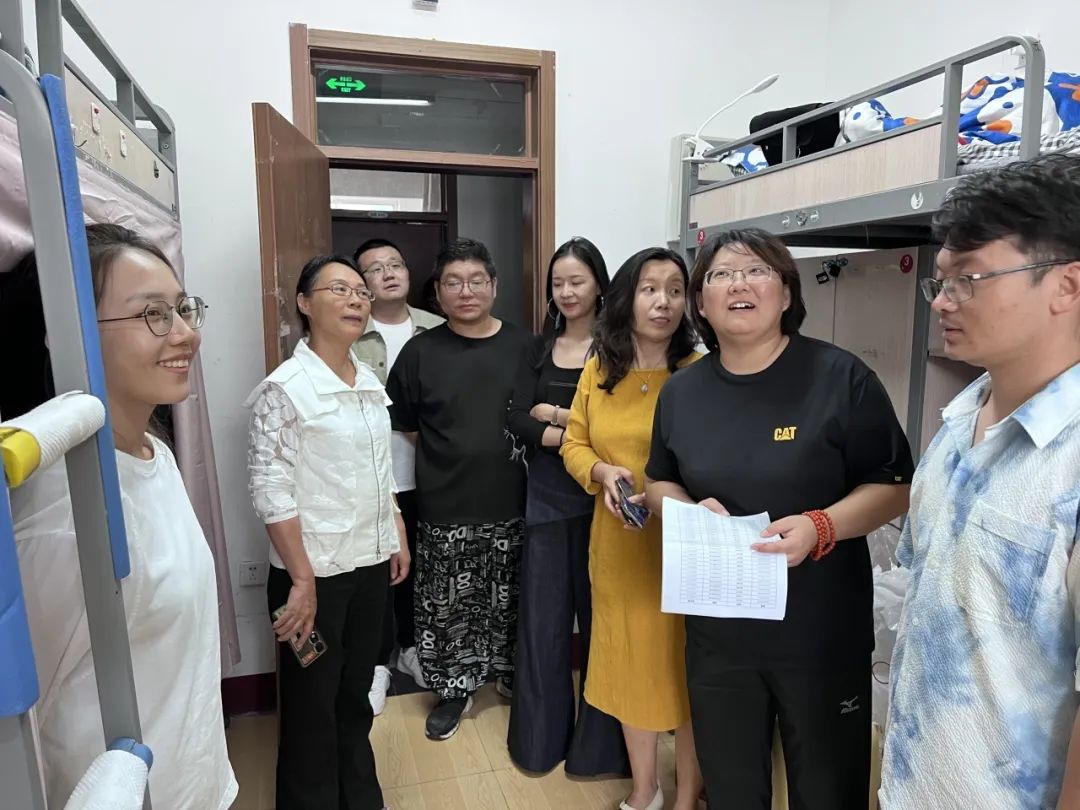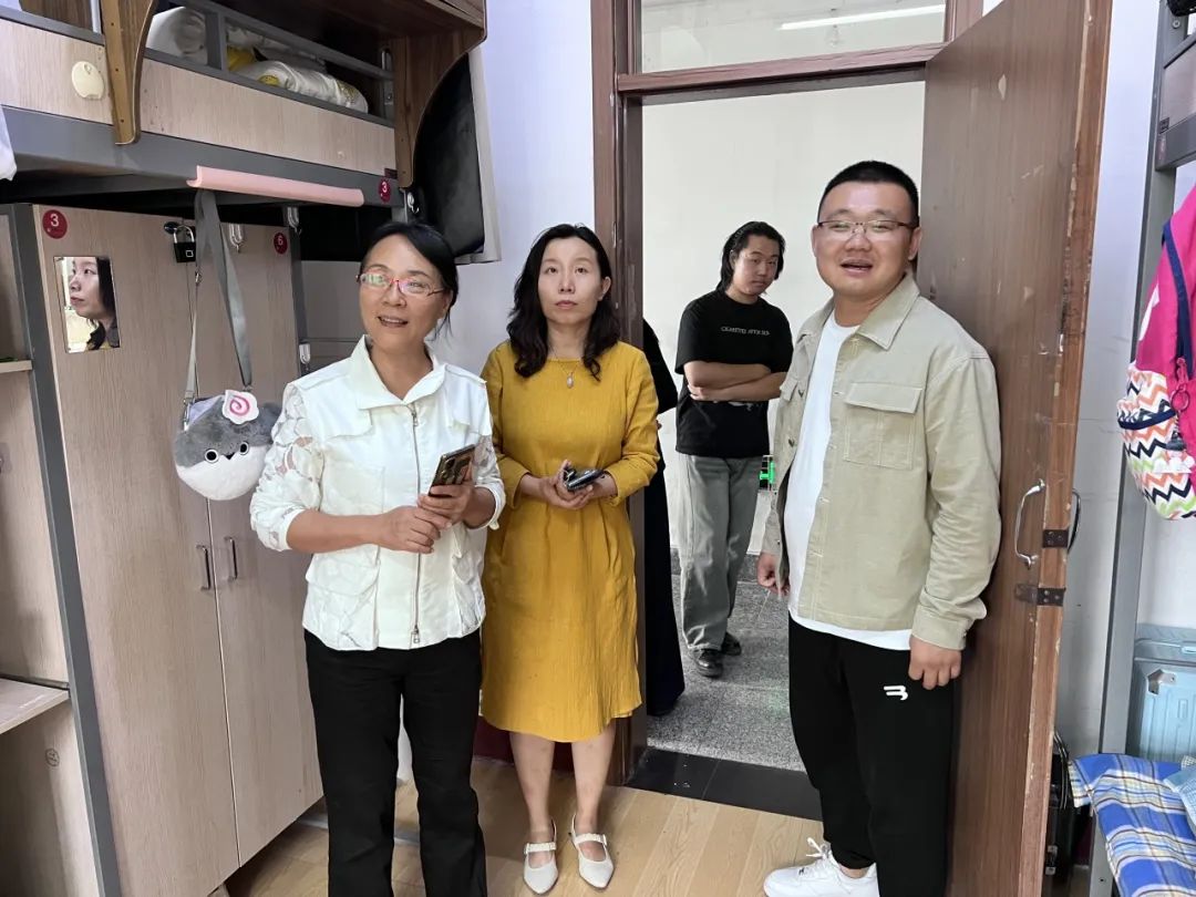 党总支书记葛雯,党总支副书记郭宁与各位辅导员老师走进宿舍询问了新生们的适应情况,从学习安排到生活起居,细致入微。他们耐心倾听新生们的分享,对于同学们提出的疑问和困惑,给予了耐心解答和积极建议,鼓励大家勇敢面对新的挑战,珍惜大学时光,努力追求自己的梦想。