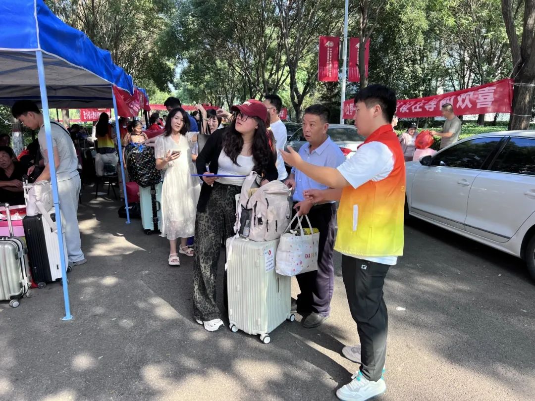 校党委副书记刘锐、校学工部部长李鹏、学工部副部长赵钦、团委副书记徐越深入迎新现场,亲自视察并指导迎新工作。他们逐一走访了新生报到处、咨询台、志愿者服务站等多个区域,详细了解迎新流程、服务保障及新生入学的各项安排。领导们亲切地与新生及家长交流,询问大家的感受与需求,鼓励新生们珍惜大学时光,勇于探索,追求卓越。