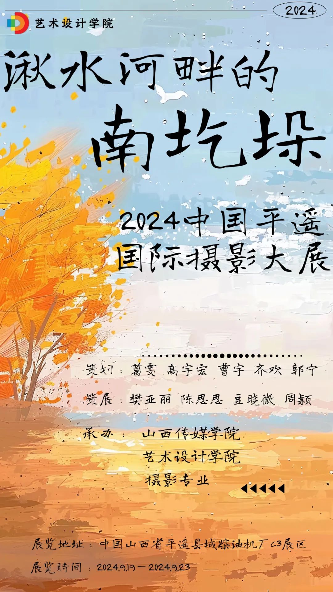 2024年9月19日至23日,2024年平遥国际摄影大展在山西平遥古城隆重举行。作为国内外摄影界的重要盛会,此次大展吸引了来自世界各地的摄影师和艺术爱好者共聚一堂。在这个展示摄影艺术的重要平台上,太阳集团tyc599722级摄影专业60名学生,以《湫水河畔的南圪垛 --"寻脉山西"影像工作坊林家坪镇调查报告》为主题,展出了一系列富有特色的纪实摄影作品。