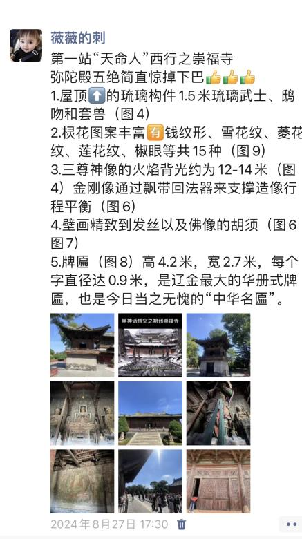 本次视觉传达设计小学期实践考察活动,不仅让学生们亲身体验了山西不同时期的文化风貌与设计特色,更在交流中拓宽了视野,在实践中提升了能力。通过一系列精心设计的考察项目与学习交流,学生们不仅收获了知识与技能,更学会了如何在设计中融入传统文化、古代历史与情感。同时,暑期国产3A作品《黑神话·悟空》大火,本次考察的路线与作品中的建筑分布完美结合,能更积极地带动学生的热情,更加主动地去学习与研究。展望未来,我们期待学生们能将此次考察的所学所感转化为实际的设计作品,用创意点亮生活,用设计改变世界。