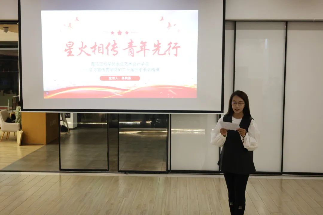青马工程学员秦鹤嘉同学对于学习宣传贯彻党的二十届三中全会精神发表了自己的宣言,以“星火相传,青年先行”为主题,将党的二十届三中全会精神与青少年紧密联系起来。党的创新精神激励青少年勇于探索和创新,奋斗精神激励青少年追求梦想鼓舞着青少年为实现自己的理想而努力奋斗,不怕困难,敢于挑战,在追求梦想的道路上不断前进。