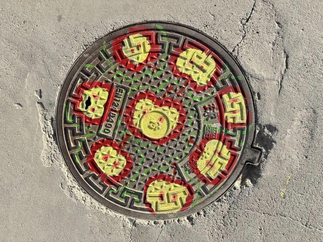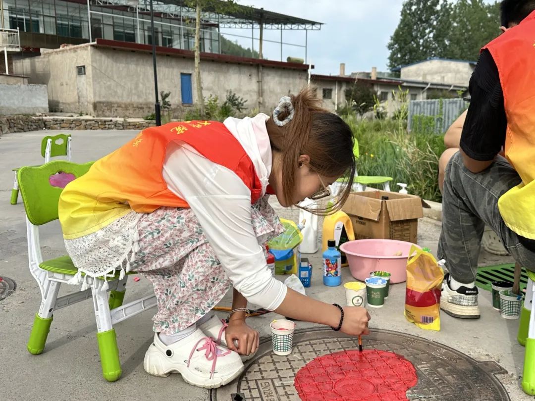 乡村环境美化不仅是提升乡村外观形象的工作,更是一项深层次的、具有长远意义的社会工程。因此队员们对太度村井盖进行涂鸦,以“红、黄、绿”为主色调,分别代表本村的苹果、黄河、生态三大元素,不仅美化了乡村环境,也促进了乡村文化的传承和发展。