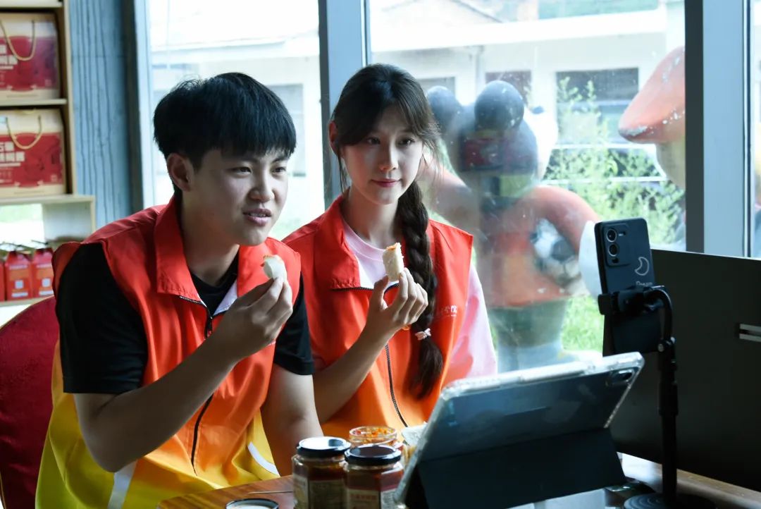 直播助农是一种有效的农产品销售方式。在本次服务中,“携爱志愿者”服务队队员也采用此方式为桑峨村苹果果肉和谷泉石碾辣椒酱带来销路。