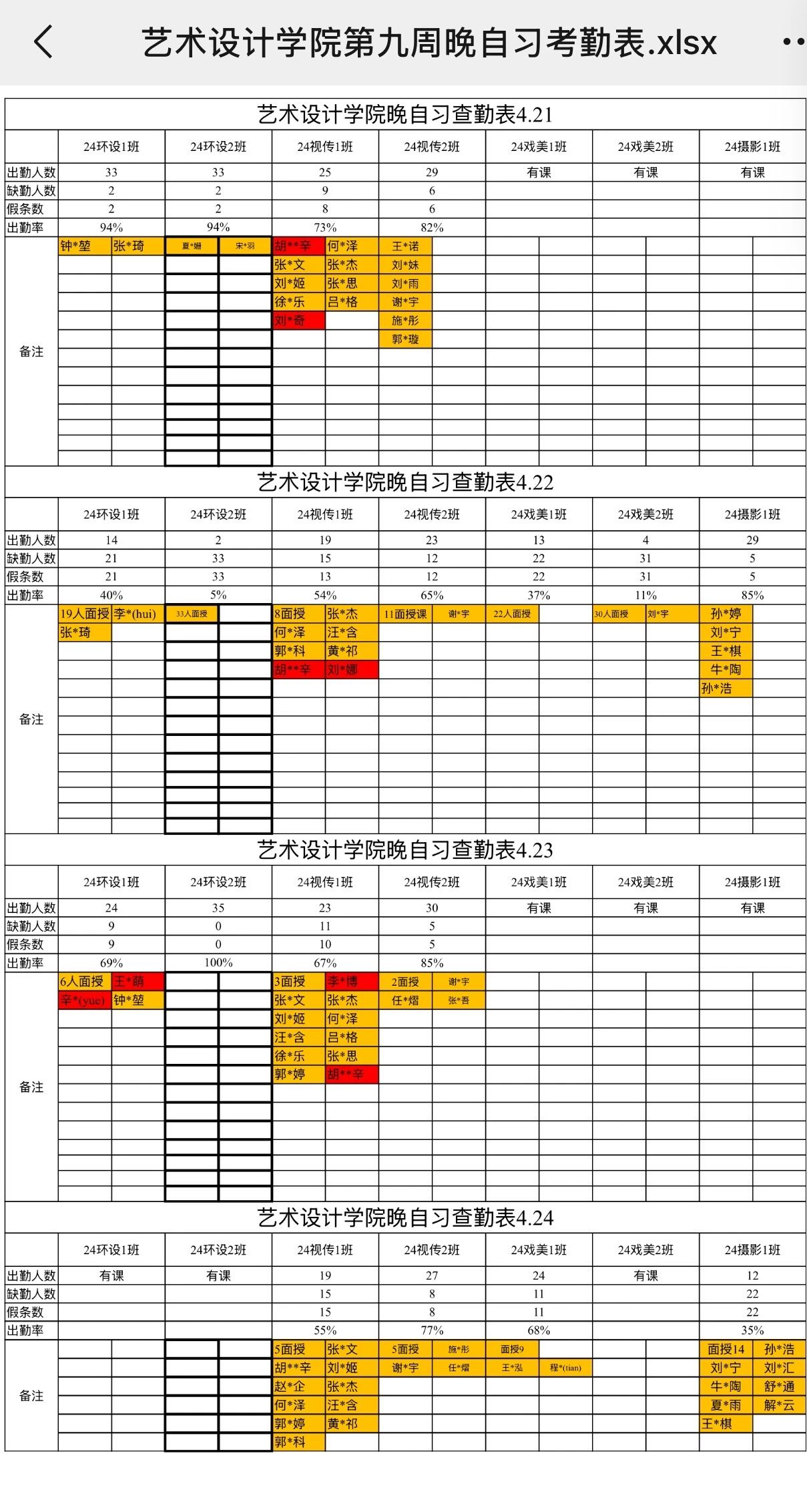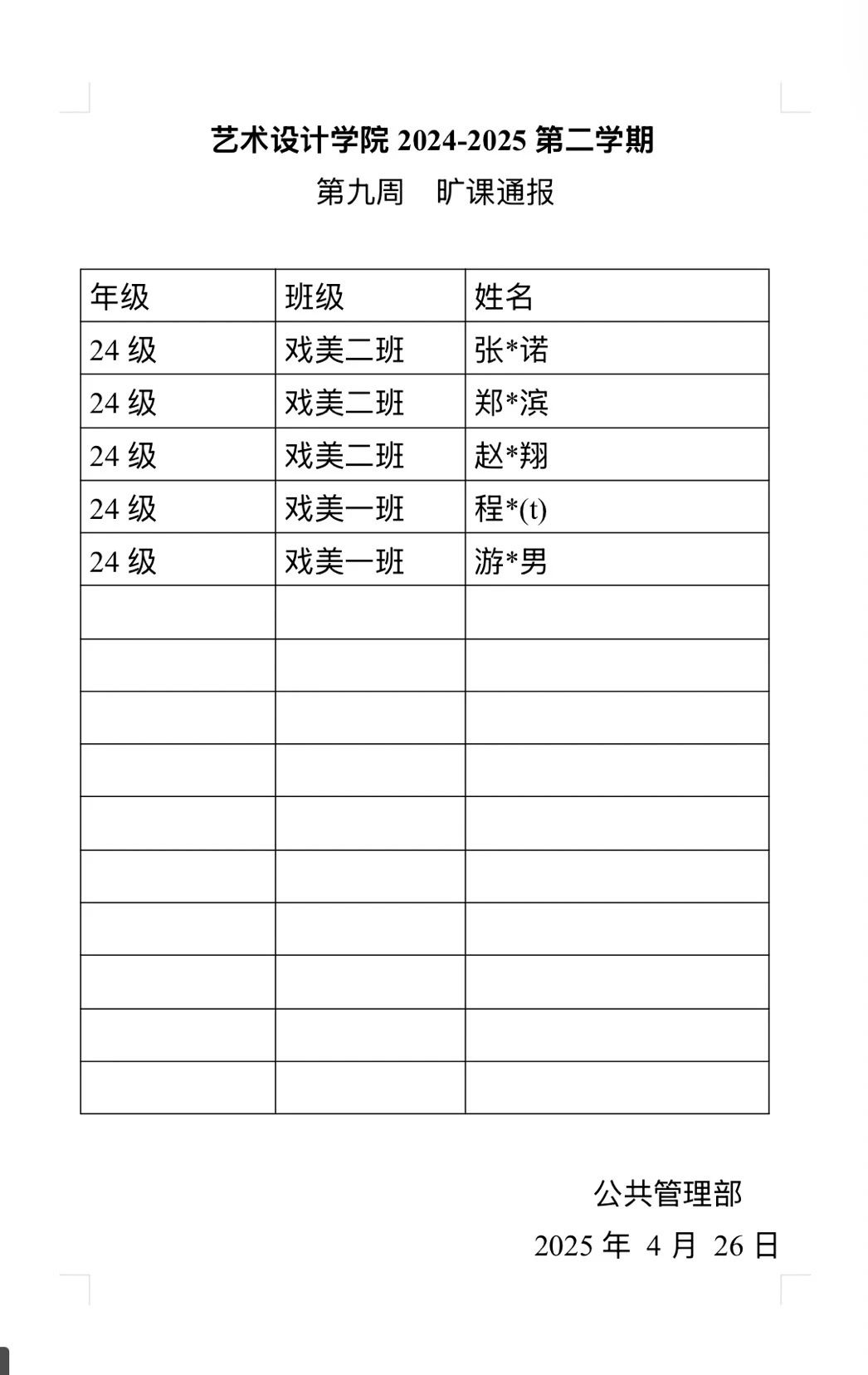 班级上课情况通报如下: