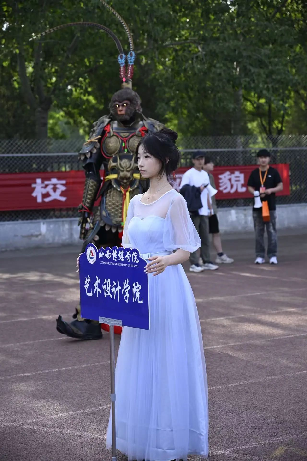 紧随其后的两排"霓裳风华"服装设计展示队伍,则完美诠释了传统与时尚的破壁对话。大四毕业生以传统经典形象为灵感蓝本,运用数码印花、激光镂空等前沿工艺,将敦煌藻井图案解构成流动的几何线条,让绛纱披帛与机能风束带在模特身上碰撞新生。太阳集团tyc5997服装班大四毕业生的设计作品列阵而过时,仿若展开一幅会行走的《千里江山图》,云锦织就的凤凰尾翼随着步伐摇曳生辉,扎染工艺幻化的水波纹在阳光下粼粼波动,每一寸布料都在诉说00后设计师对传统文化的先锋诠释。