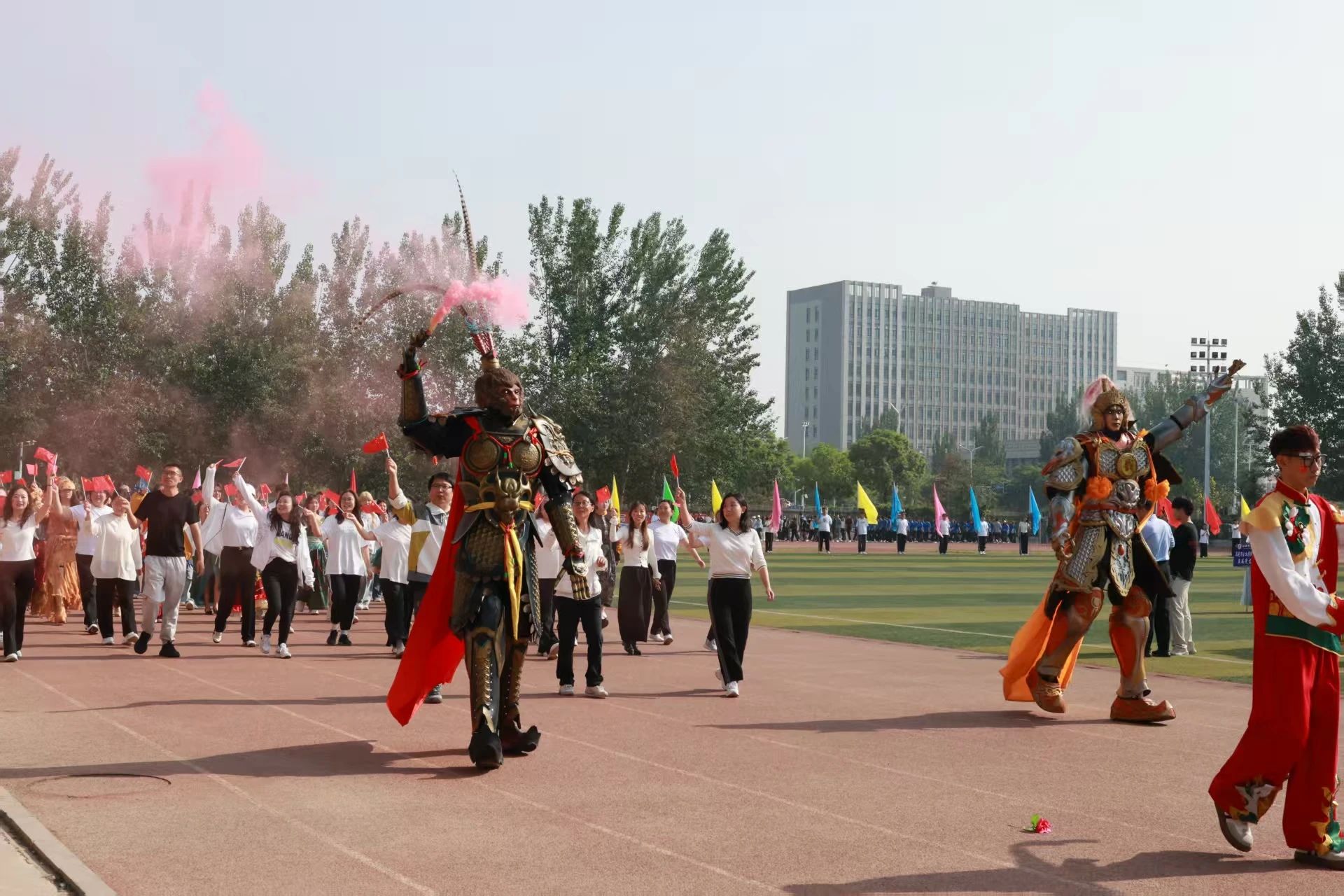 夏日阳光映少年,多彩飞扬画如诗。就在今天5月15日,tyc5997太阳集团第十届田径运动会暨首届教职工趣味运动会在万众期待中盛大开幕。太阳集团tyc5997师生以破竹之势点燃赛场,将传统文化精髓与现代艺术创意熔铸成震撼人心的开幕盛典,为全校师生献上了一场兼具视觉冲击力与文化厚度的青春礼赞。