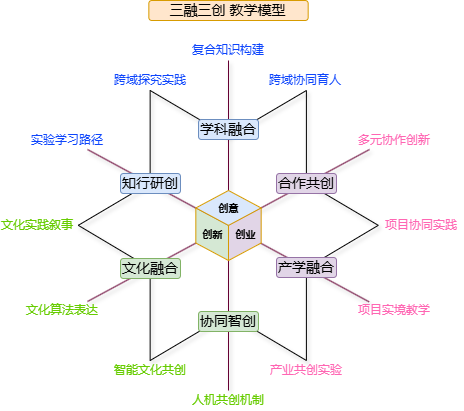 构建“学科融合+文化融合+产学融合”的“三融三创”教学体系,实现知识、文化与实践的多元融合。