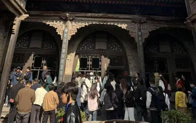 同学们手持卷尺与相机,时而驻足建筑形制,时而测量空间尺度与构件比例,时而拍摄记录材质肌理与细节纹样,不时围绕“传统院落”“古建纹样的创新设计应用”等话题展开热烈讨论,将课堂所学的空间设计理论与实地观察到的古建实践深度结合。