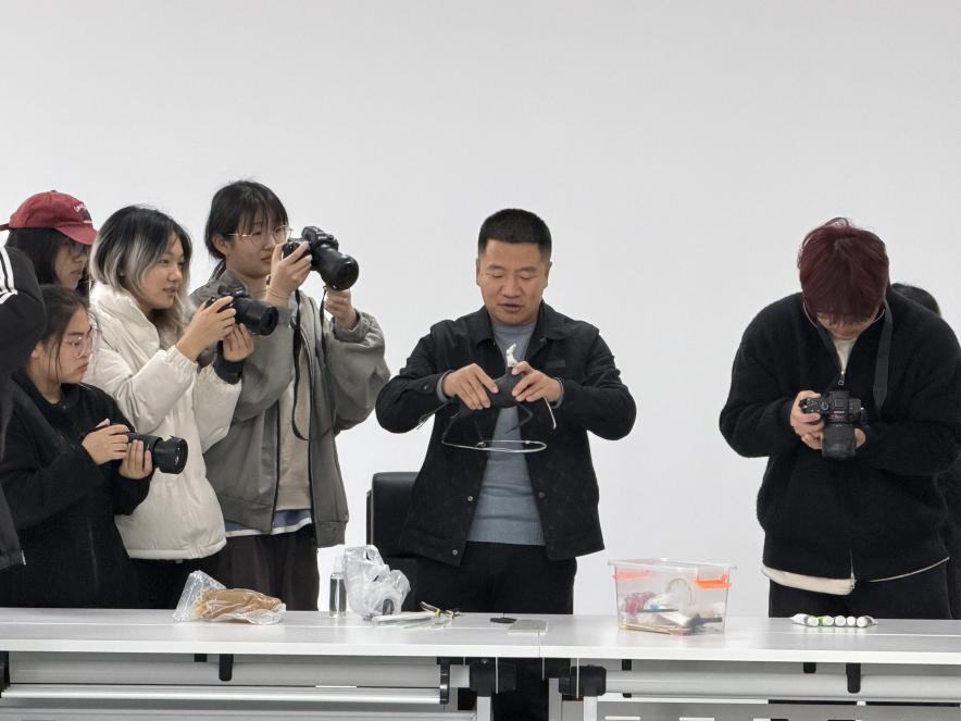 最热烈的要数互动体验环节,在张琨老师的悉心指导下,学生们纷纷动手尝试面塑制作。虽然初次尝试手法生疏,但在老师的耐心指导下,一块块平凡的面团逐渐在同学们手中呈现出基本形态。张琨老师与同学们分享着他的创作理念:“做面塑人就是用双手来‘讲’故事,做得越真,‘讲’出来的故事越容易得到别人的认同。”同学们在实践中发现,面塑制作与摄影艺术有着异曲同工之妙,都需要细致的观察、精心的构图和准确的艺术表达,只是使用的媒介不同。