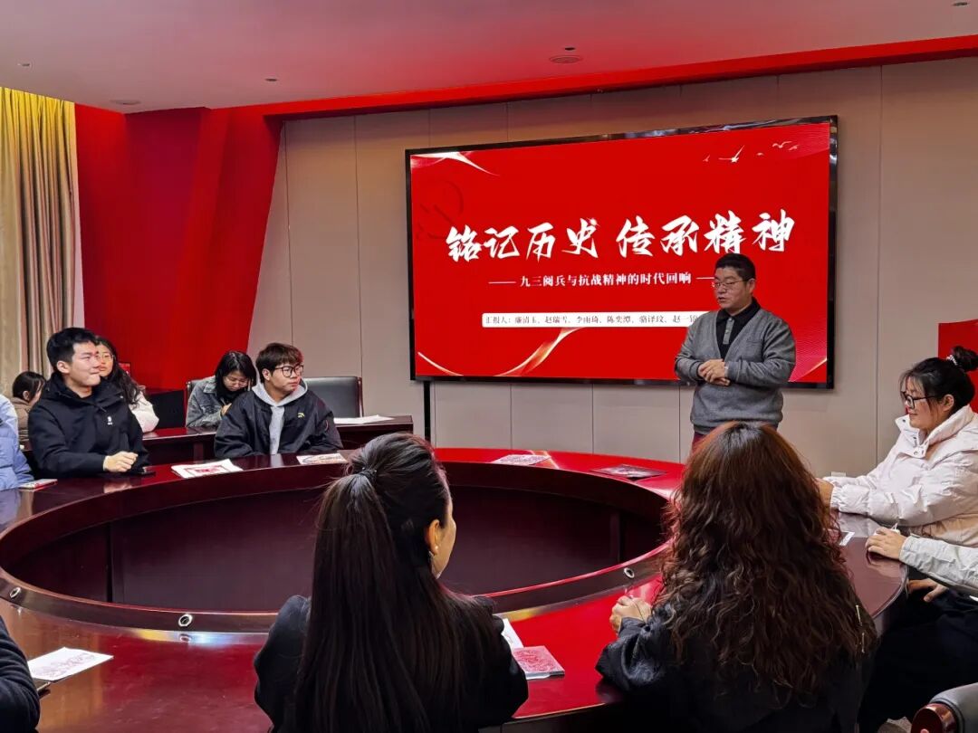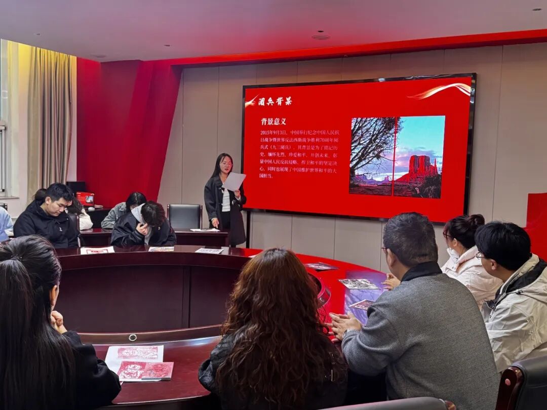 系列活动的第一部分,聚焦于“铭记抗战史·青春践初心”。团支部骨干化身“宣讲员”,围绕“抗战历程中的精神密码”展开专题分享。PPT以时间为脉络,从“九一八事变”的山河破碎,到“七七事变”的全民族觉醒,再到平型关大捷、百团大战等关键战役的振奋人心,用清晰的时间轴、珍贵的历史照片串联起14年艰苦卓绝的抗争史。