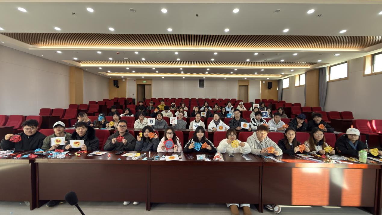 原本略显生涩的剪刀在指尖逐渐灵活,有的同学尝试剪刻传统吉祥纹样,有的则结合专业特色融入现代设计元素,教室内不时响起阵阵赞叹声,氛围热烈而温馨。 实践环节里,大家手持剪刀、红纸,在老师的耐心指导下折、剪、刻、挖,从简单的纹样尝试到完整的作品成型,指尖翻飞间,一张张普通的红纸逐渐蜕变为灵动的艺术佳作,教室内满是创作的热情与成就感。