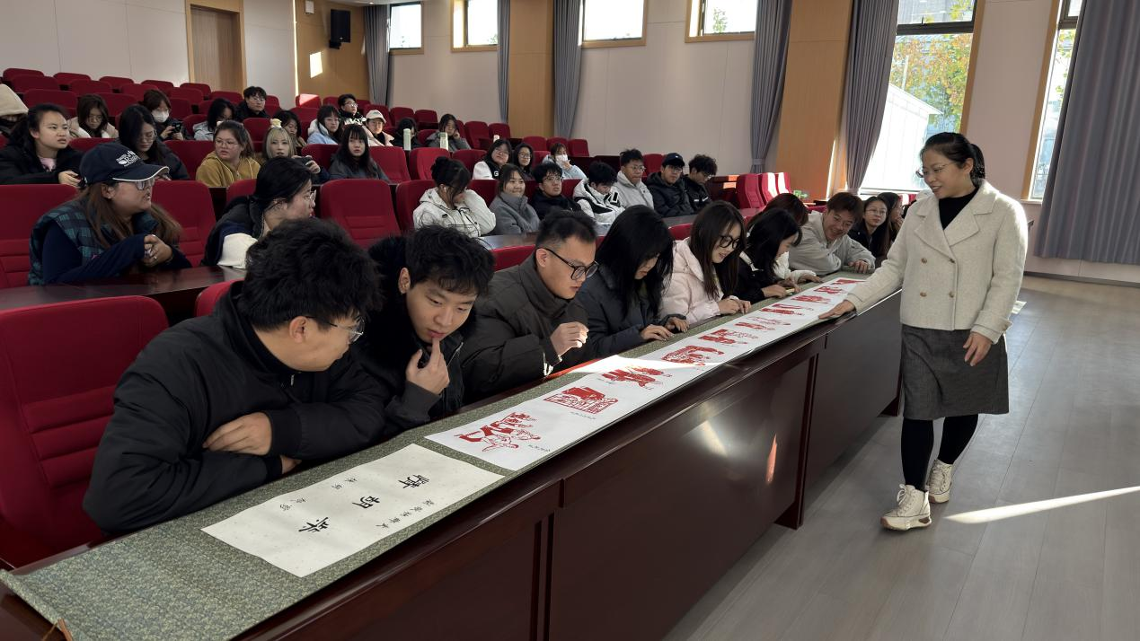 活动中,胡栋老师以生动的讲解溯源剪纸文化的历史脉络,从民俗寓意到技法演变,将这项古老技艺的传承故事娓娓道来。随后,老师现场展示多幅剪纸精品,细腻的线条、精巧的构图让同学们惊叹不已,纷纷凑近观察学习。