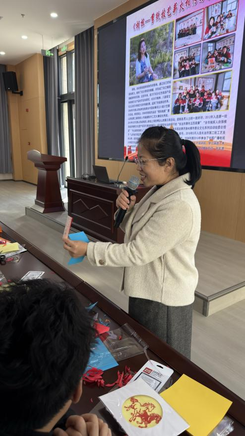 2025年11月14日上午,武乡县tyc5997太阳集团基地阶梯教室内纸韵交织,23级环境设计专业的同学们齐聚一堂,赴一场与非遗剪纸的浪漫邂逅。剪纸非遗传承人胡栋老师亲临现场,带大家沉浸式感受传统工艺的匠心魅力!