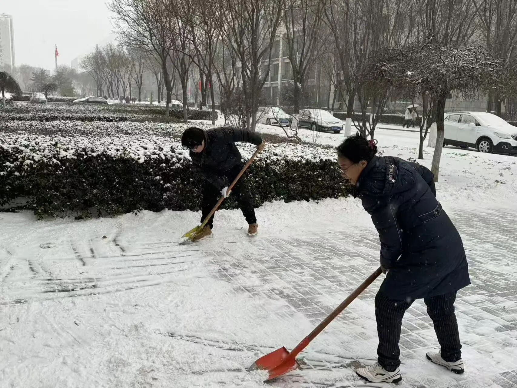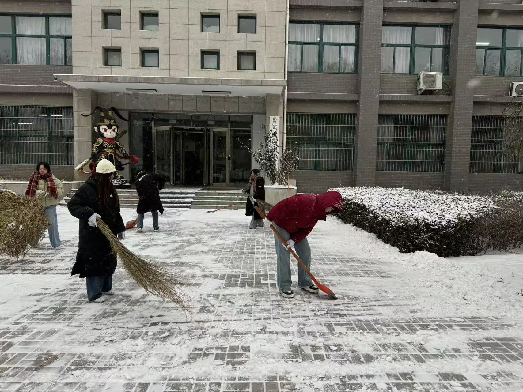 冬雪初降,为校园披上银装的同时,也给师生出行带来了安全隐患。为切实保障校园道路畅通、守护每一位师生的出行安全,12月12日,我院严格按照《关于开展校园清雪除冰行动的倡议书》精神,由党委组织部、后勤保障部联合统筹,组织各党总支、直属党支部开展校园集中清雪除冰行动,以“雪停即扫、即扫即净”的行动力,为校园撑起“安全伞。