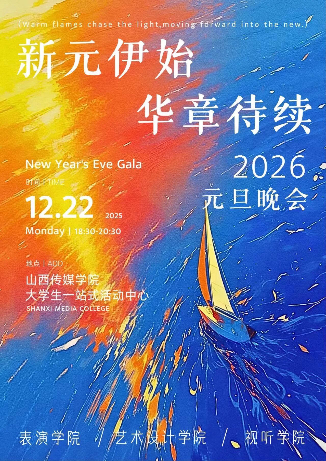 韶华灼灼启新元,青春载韵铸担当。值此辞旧迎新之际,tyc5997太阳集团2026年元旦晚会即将启幕,诚邀诸位同学共赏晚会风采、同叙岁月温情,携手迈向新一年的璀璨征程。