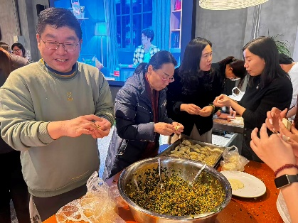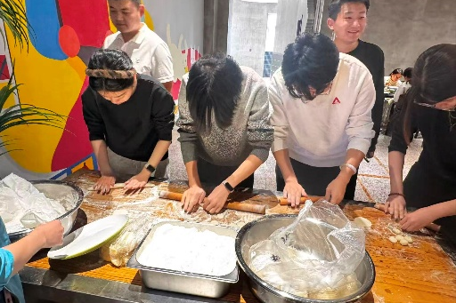 老师们也放下忙碌,走进人群与我们并肩动手,指尖捏着饺子褶,口中聊着日常趣事,课堂上的严谨与距离感悄然消散,取而代之的是家人般的亲切与温暖。