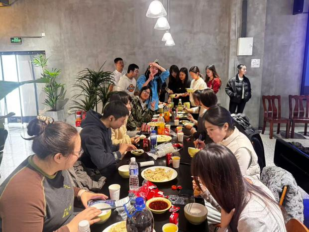 第一锅热气腾腾的饺子出锅,大家捧着碗围在一起分享,自己包的饺子吃起来格外香。热饺下肚,暖的是胃,更暖的是24环境设计二班这个集体的心意。同学们都非常感谢王潇洋老师的用心组织,这个冬至,因为有班级同学们和老师们的陪伴,变得特别不一样。这一碗冬至饺,包的是团圆的期许,藏的是师生同行的情谊,也让同学们在集体中感受到了归属感与幸福感。在寒冬时节,这份由师生共同创造的温暖,也成了校园里最珍贵的回忆,让同学们更懂团结的意义,也更珍惜彼此相伴的时光。