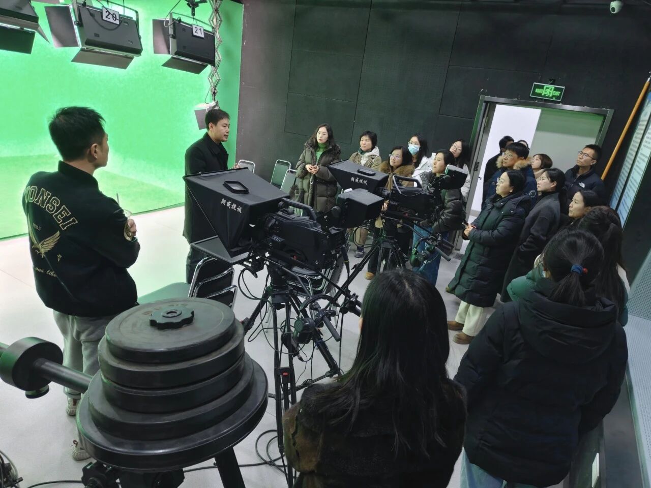 系列活动的收官环节,全院教师赴学院实践教学中心开展调研学习。作为学院实践教学与艺术创作的核心载体,实践教学中心整合演播、录制、后期制作等全链条教学资源,配备专业演播厅、虚拟演播室等功能区域,是贯通理论教学与实践应用、培养学生专业实操能力的核心平台。中心副主任周锋教授带领全体教师逐一参观各功能区域,全面介绍设备性能、教学应用场景及产学研成果转化案例。全体教师结合自身教学科研方向,围绕资源课程化开发、跨学科项目协同、产学研一体化建设等关键问题展开深度研讨,为构建具有专业特色的实践教学体系、推动学科交叉融合发展凝聚共识。