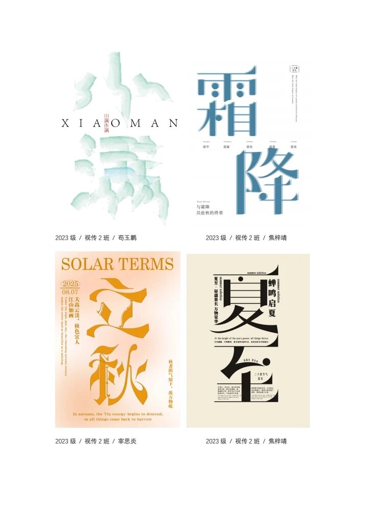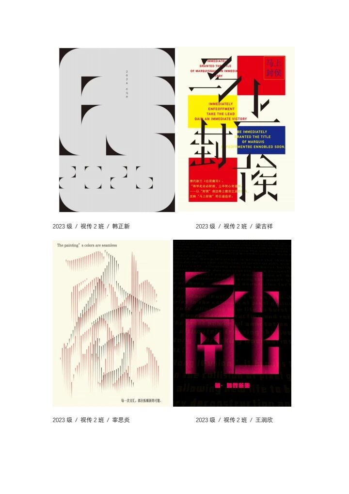 本课程通过理论与实践相结合的教学方式,系统覆盖了字体设计的基础理论、创意方法与实践应用,完成了系列递进式的作业任务。学生在课程学习过程中,不仅夯实了字体设计的专业基础,提升了创意设计与版式编排能力,更在创作中深化了对中华优秀传统文化的理解,增强了文化自信与家国情怀。结课画册作为课程成果的集中展现,既检验了学生的专业学习效果,也培养了学生的成果整合与系统表达能力。后续,课程将根据学生的学习反馈与作品表现,进一步优化教学内容与教学方法,加强实践教学环节的针对性与创新性,更好地衔接行业需求与专业发展,助力学生成长为兼具专业素养与文化内涵的视觉传达设计人才。