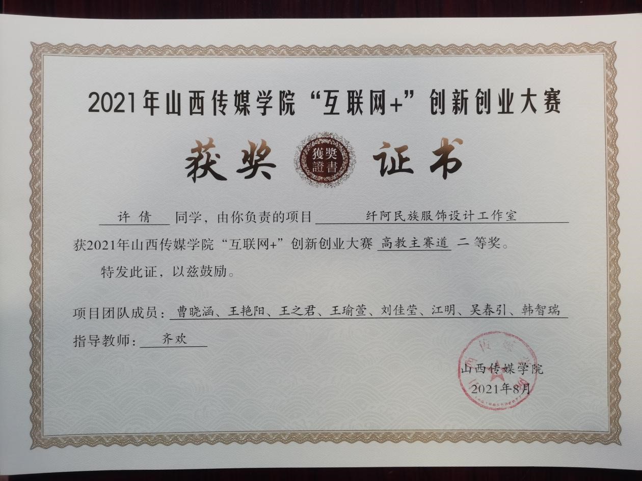 纤阿民族服饰设计工作室致力于设计日常化和大众化的民族服饰,让民族服饰的设计与传承不再局限于本地区本民族发展,而是让普通大众在日常场合都可以身着有独特民族元素的民族服饰。工作室巧用"互联网+"的思维构建线上+线下融合发展的消费模式,挖掘民族文化内涵打造差异化日常化大众化特色民族服饰品牌,延续民族服饰生命力,更好的传承和弘扬少数民族服饰之美,少数民族也是我们不可分割的一部分,传承民族服饰之美应该是我们每一位中华儿女的责任。