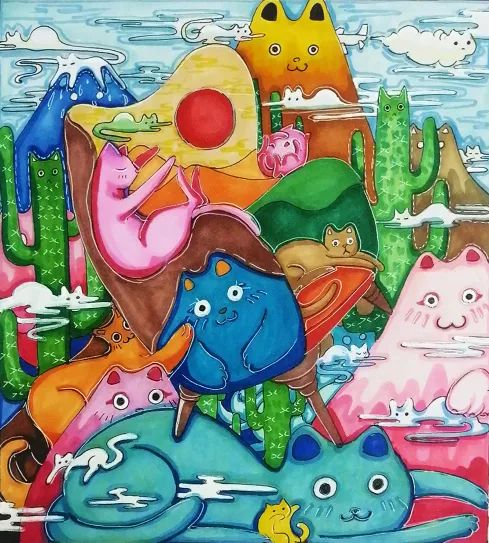 设计色彩是为反映设计意图而作的造型表现和研究。通过几周的学习,同学们对色彩有了更深刻的认识,提升了同学们对色彩表现的积极性和创造力;在设计呈现方式上也不再拘泥于平面,视觉效果更为丰富,强化了同学们对形式美的有效把控及表现力。