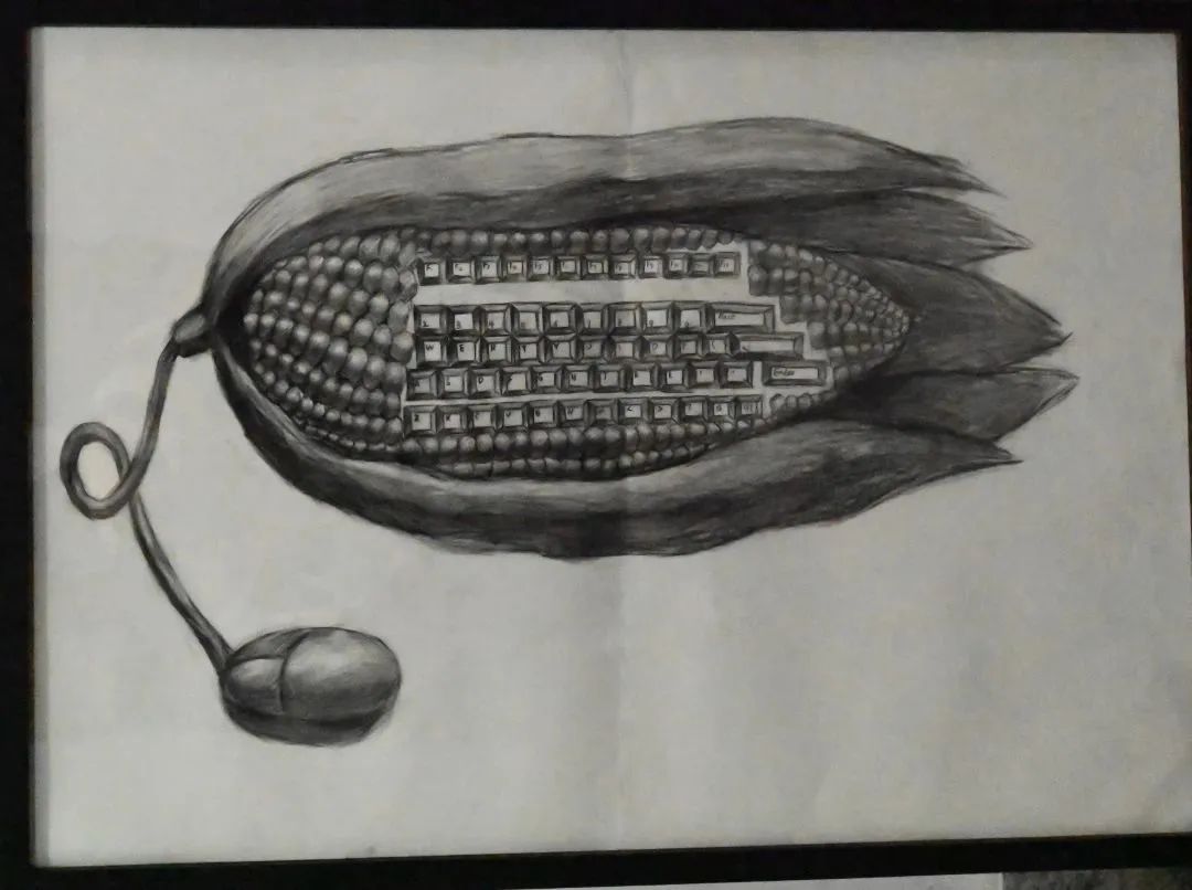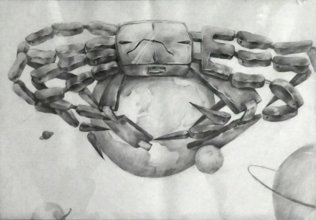 设计说明:利用设计素描中所学的拆分重组所完成的一幅作品,把眼镜的结构进行拆分,然后把他们重组成一组植物。通过几何图型对画面进行切割,使画面内容更加丰富。
