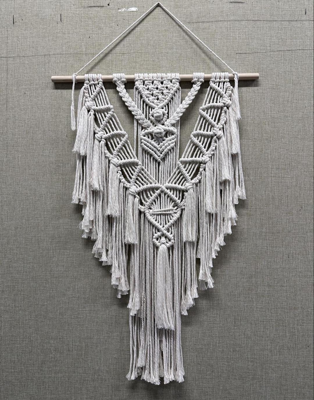 设计理念:Macrame艺术起源于南美洲,其本意为流苏花边结,是一种自由灵活的纯手工编织艺术。通过基础绳结的重复、堆叠、循环,可以搭配组合创造出多种多样无穷无尽的造型。此挂毯图案简约,编织图案具有重复之美,整体色调更偏于怀旧风色彩,繁复的设计会带给人强劲的视觉冲击和艺术感。