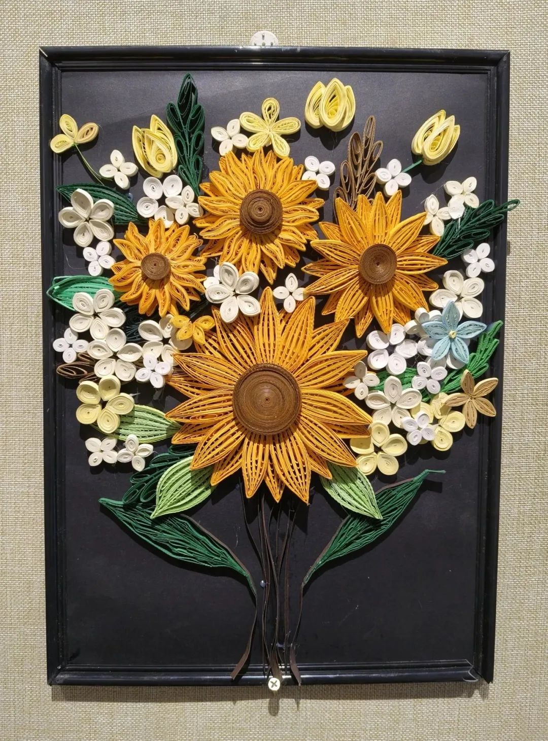 设计理念:采用衍纸构成的工艺,生动地表现出对自然美的独特描绘,以及人类与自然的关系的思考。柏树被认为是象征着人类的坚韧和生命力,而金黄色的麦田则代表着丰收和丰盈,展示了对大自然的敬畏和热爱。