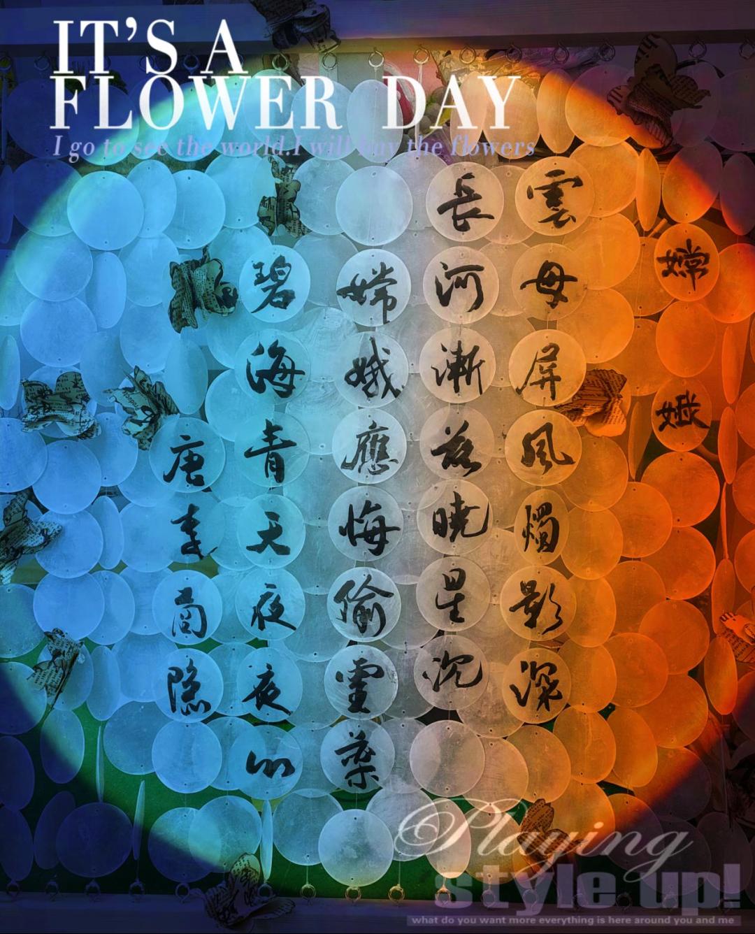 设计理念:微风拂过,贝壳相互碰撞发出悦耳铃声,让人心旷神怡。云母贝壳与书法、纸烧蝴蝶的结合,自然、文化和美的完美交融,书法为墨,赋诗嫦娥一首,纸烧蝴蝶为翅,自然与艺术融合,让美丽在指间绽放。