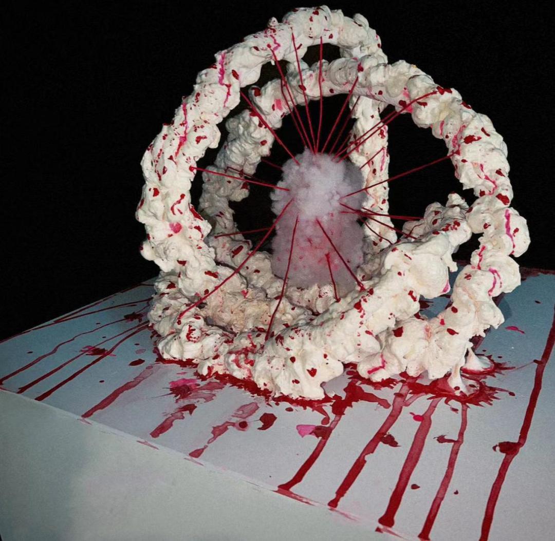 设计理念:那种小心翼翼,却又欢喜得追逐触而即碎的梦。用吸管定格了这一零散的梦构造,富有肌理的吸管层。在一个不规则的平面上独立又互相关联。生活中亦是如此,一人难顺百人意,保持心底的善良和纯洁。总有一天心里苦苦支撑的梦会被人认可,也许正因为梦易逝,这定格的瞬间才会更加纯白无瑕。