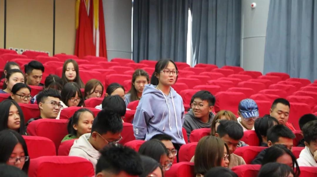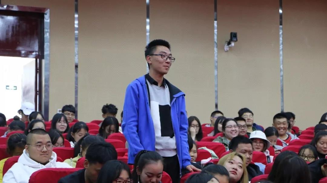 接着安剑峰副书记从国家,学校,老师等几个方面与新生进行提问式互动,启发新生思考该如何度过自己的大学四年。