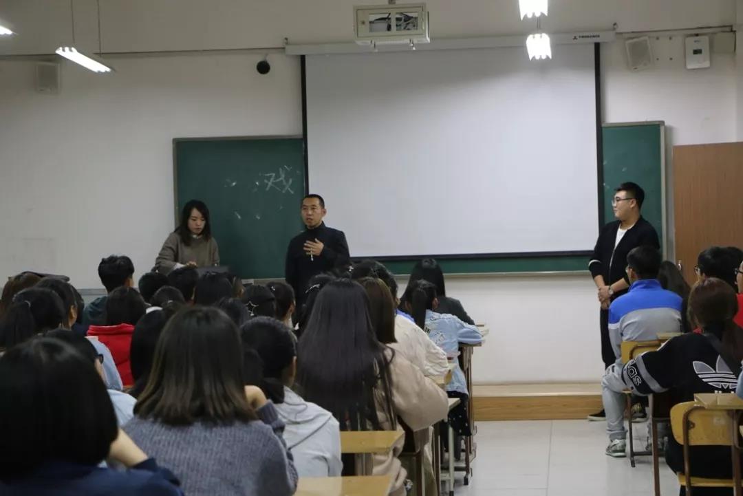 系级新生教育结束后,老师与同学们转场至文博楼各教室进行分专业教育。