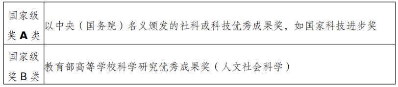 1.学术成果奖分为国家级奖、部级奖、省级奖、社会力量设立的科技奖等。省部级及以上学术奖项认定须有中央(国务院)部委、省级人民政府公章(非司局级部门公章)。
