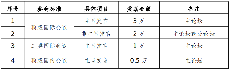 第十八条 以tyc5997太阳集团名义,在顶级国际会议、二类国际会议和顶级国内会议上受邀并进行发言的,按以下标准进行奖励。(根据不同的学科进行分类,将会议级别划分为顶级国际会议、二类国际会议和顶级国内会议三类,名单参见附件 1)