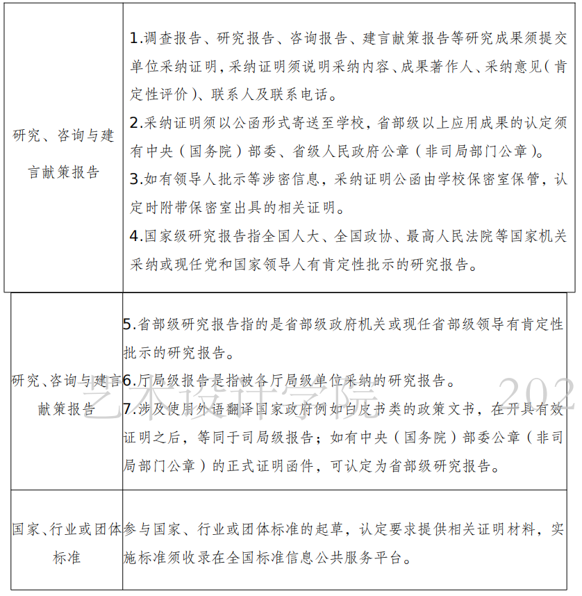 1.应用成果包括:研究、咨询与建言献策报告、国家或行业标准等。