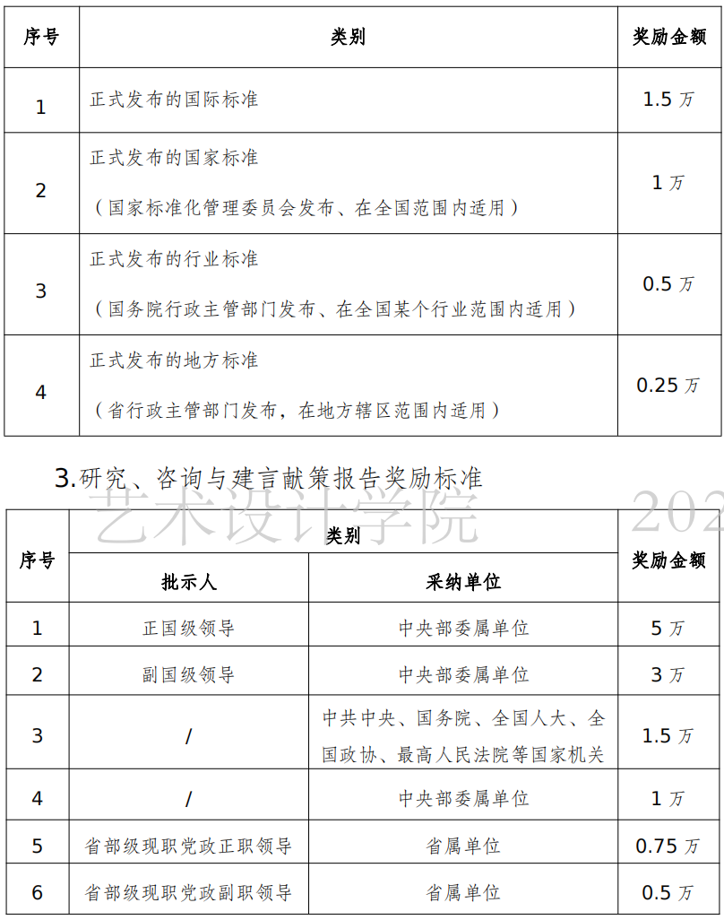 2.知识产权类成果中的初始授权的其他国家发明专利、国内实用新型专利、外观设计专利、计算机软件著作权登记只计工作量,不计入奖励。专利、计算机软著奖励标准一览表: