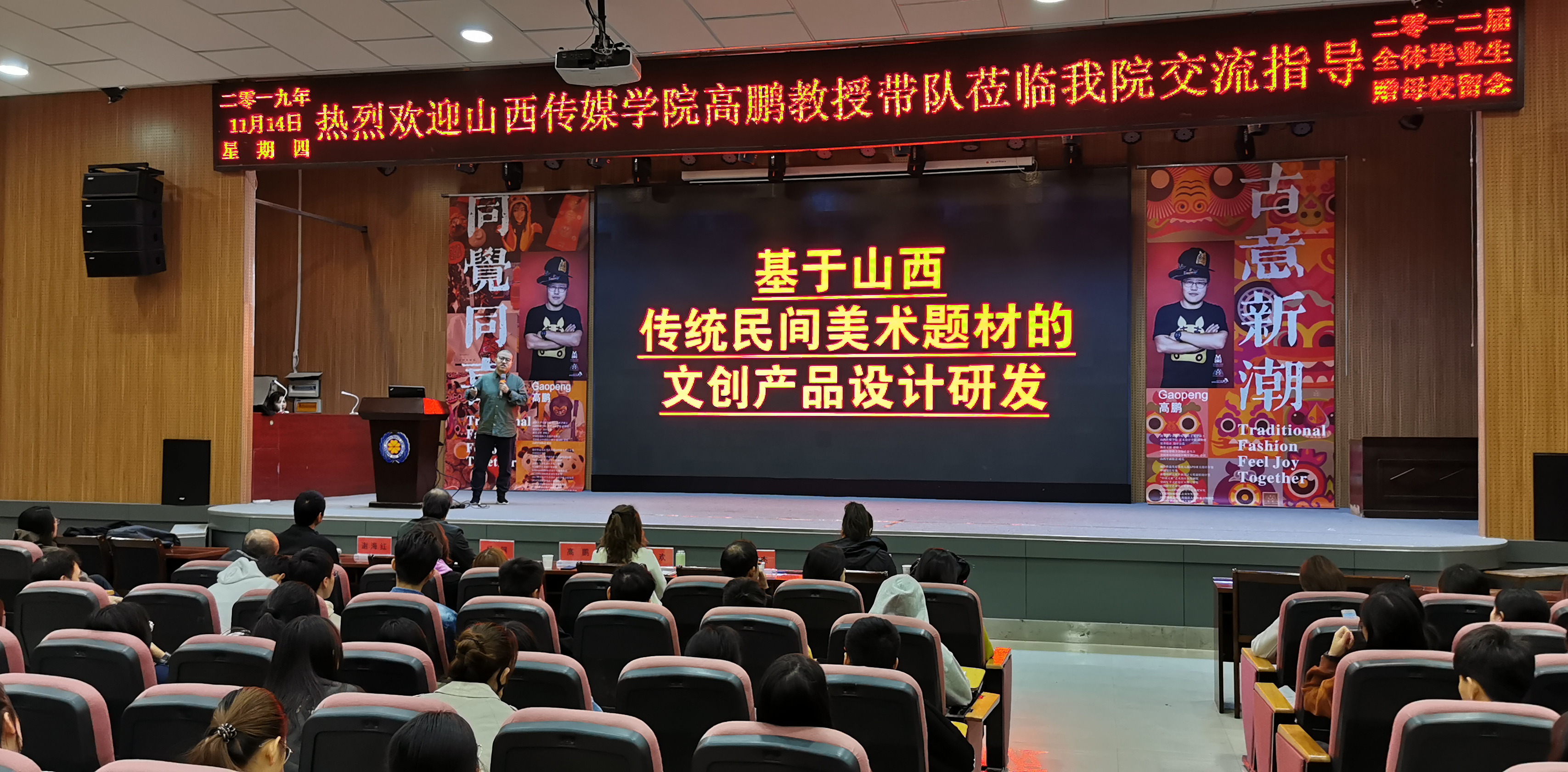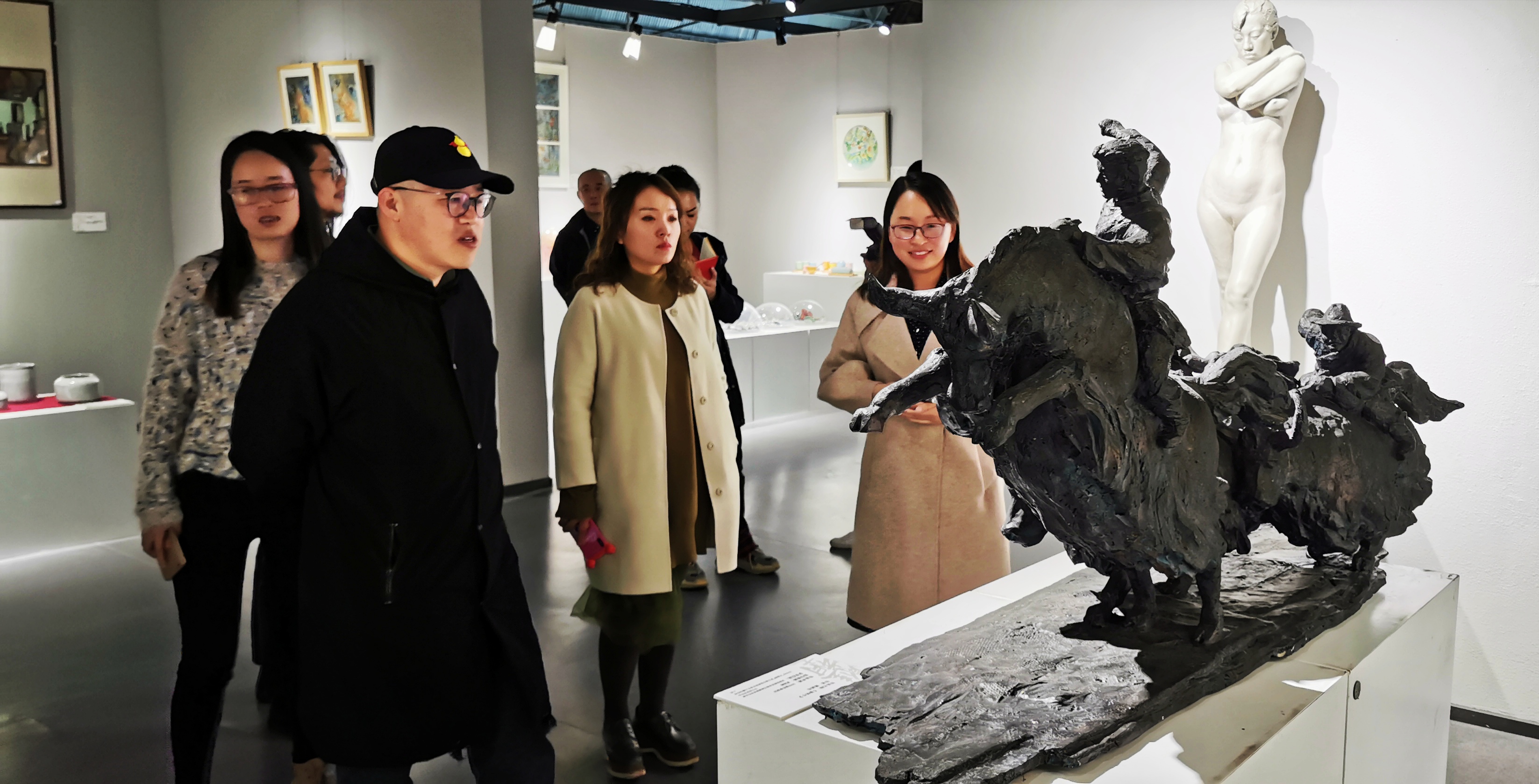 2019年11月14日,视觉传达设计教研室主任高鹏,人物形象设计教研室主任齐欢,及赵丹妮,宁杰两位专业教师,一行4人,前往郑州轻工业学院易斯顿美术学院考察交流,并参观了各专业学生作品展。