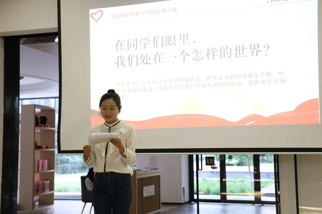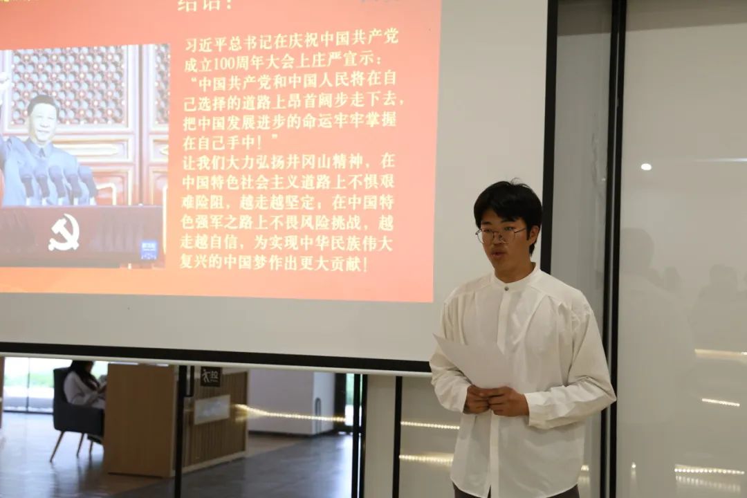 宣讲团成员尹方彤同学站在台前,声音充满力量与激情,将井冈山精神的历史背景和主要内涵娓娓道来。井冈山精神之所以伟大,就在于它是跨越时代的限制,在当今社会仍发挥着重要作用,它提醒我们要始终坚持正确的方向,保持实事求是的态度,勇于创新和实践,同时发扬艰苦奋斗的精神,为实现国家的繁荣 富强和人民的幸福安康而不懈努力。
