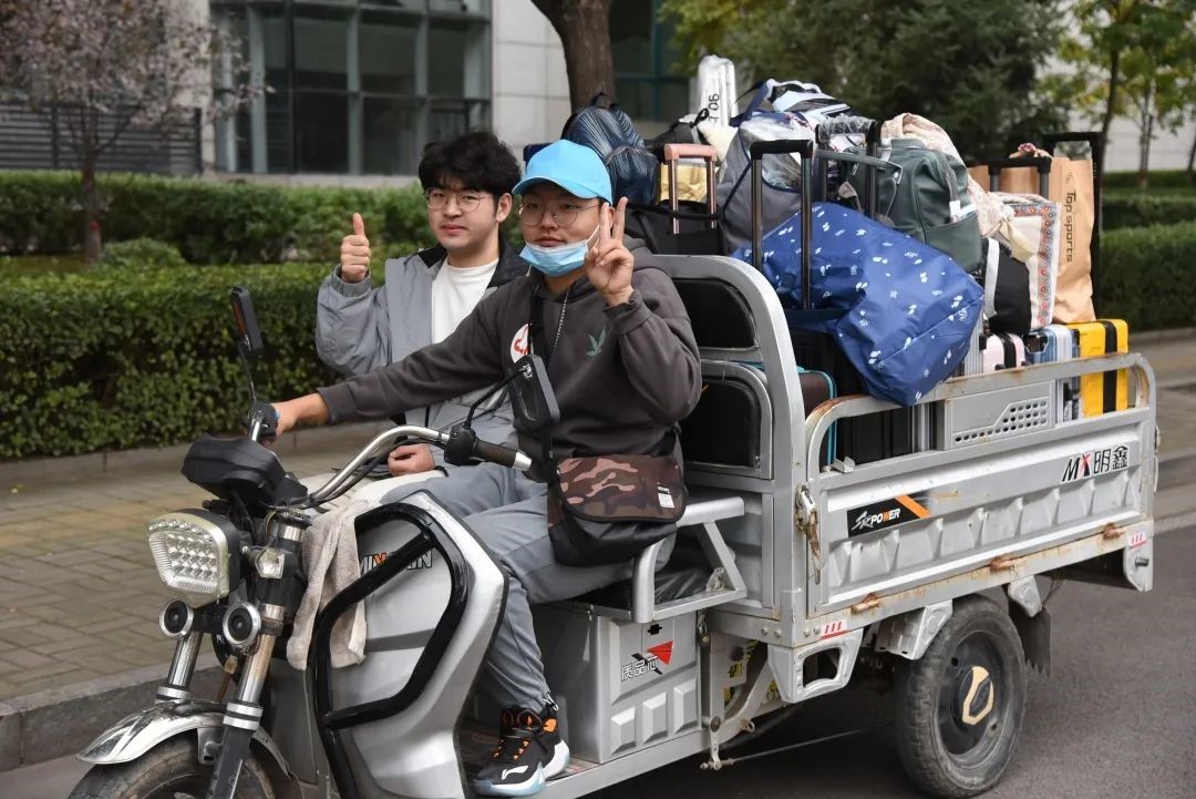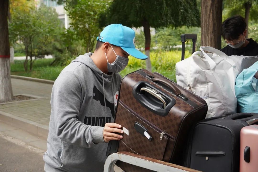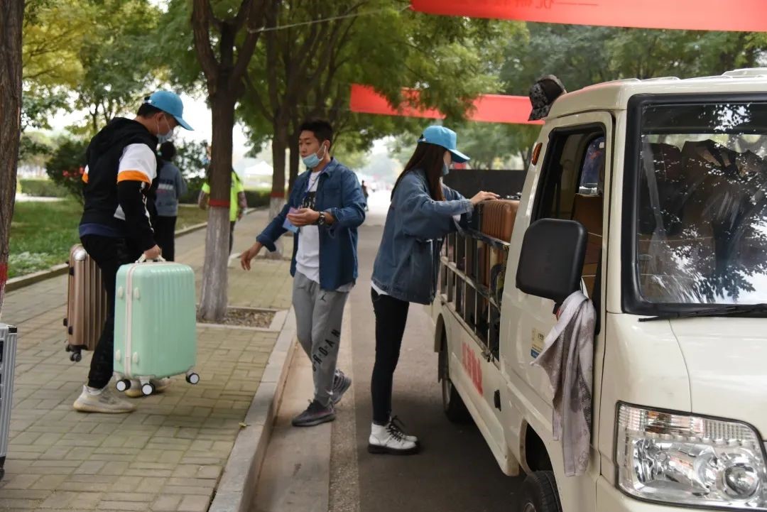 在新生抵达校门口报到时,志愿者引领新生步入校园,介绍校园内部环境和解决新生对校园的疑问,并领取校园卡,到寝室宿管进行报到至搬进宿舍的整个过程。