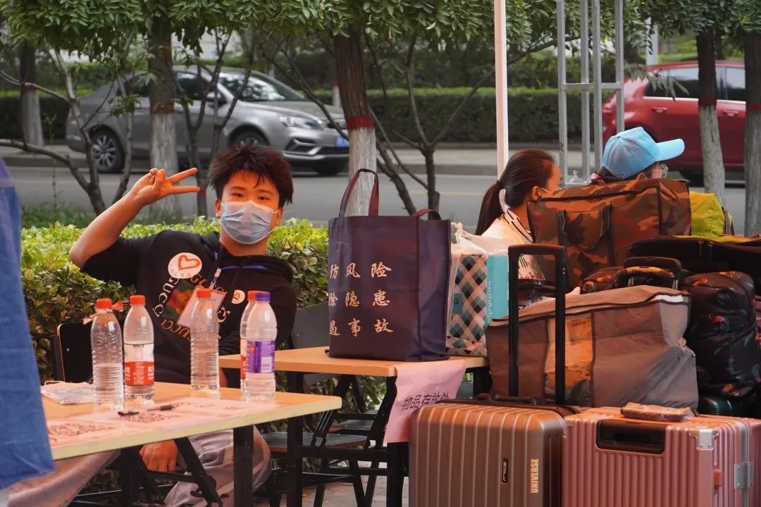 志愿者穿梭于迎新现场,时刻等待着为新同学伸出援手,帮他们提行李,给他们带路。志愿者们的热情周到的服务,温馨甜蜜的笑容更是让同学们真切感受到来自学校的温暖,来自志愿者的关怀与照顾。