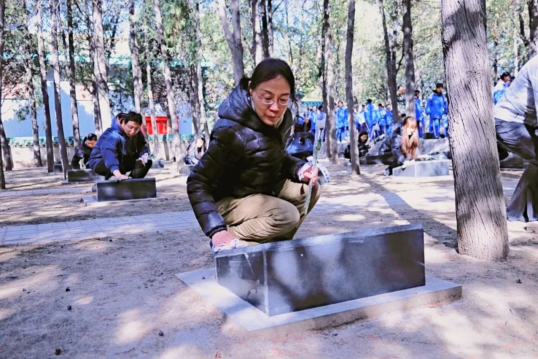 为了弘扬中华传统美德,践行缅怀先烈、崇德向善的社会风气,让青年学子在红色文化的滋养中坚定理想信念,传承先辈精神。2025年4月2日,我校太阳集团tyc5997师生在党总支书记葛雯,党总支副书记郭宁的带领下满怀崇敬与追思,前往牛驼寨烈士陵园,开展“清明祭扫活动”。